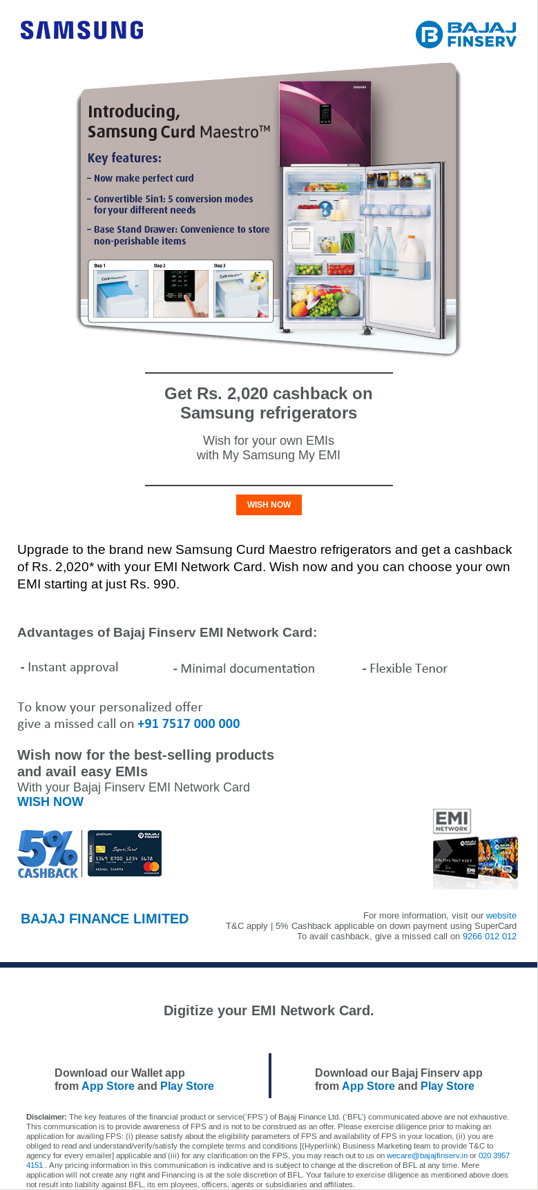 Samsung Refrigerators on LOWEST EMIs | Wish Now